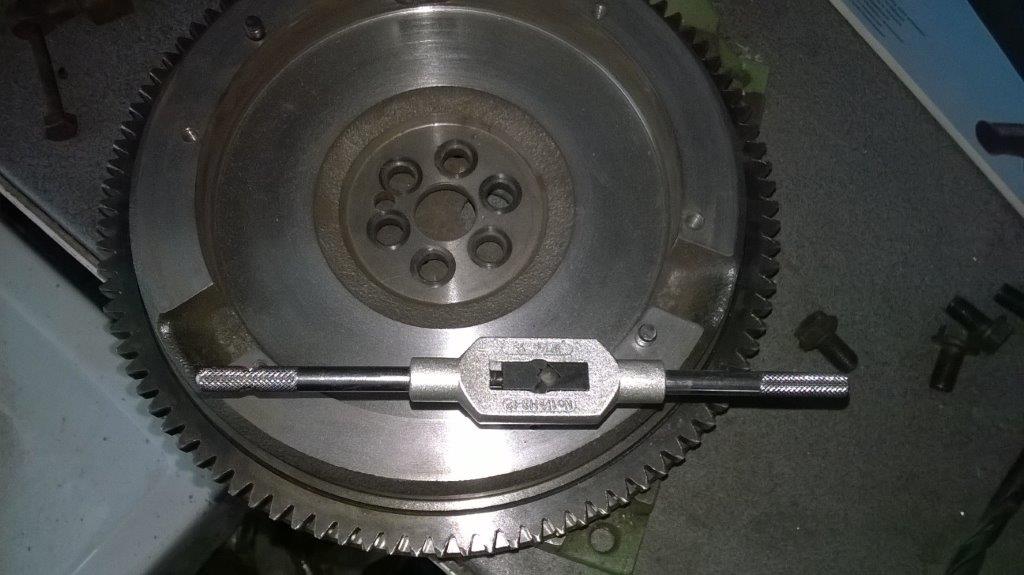 Was für ein unerfolgreicher Schraubertag heute... Zuerst das Ausrücklager, das ging dann plötzlich wie geschmiert, ich weiß jetzt auch warum, die Gabel die das Ausrücklager bewegt KANN auch seitlich verschoben werden, dann rutscht das Ausrücklager tiefer rein und dann passt natürlich auch die Haltefeder wie sie soll. DANN kam das schon angesprochene Problem das die 6. (es sind nur 6, nicht 8 Schrauben) abgerissen ist, also Schwung wieder runter, Schraube ausbohren, gewinde nachschneiden (selbiges vorher noch holen), das Getriebe wollte zuerst auch irgendwie nicht passen, habs dann (leider, erklärung kommt gleich) reingesteckt und alles zusammengebaut. So gegen 17h war dann alles fertig und zusammen gebaut, Probestart, EINWANDFREI, er läuft wie ein glöckerl, freu freu....